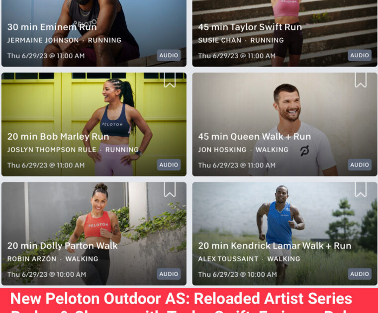 Peloton has released six new artist series classes as part of an Peloton Outdoor AS Reloaded artist series with a new badge. Classes are with Taylor Swift, Eminem, Bob Marley, Queen, Kendrick Lamar & Dolly Parton.