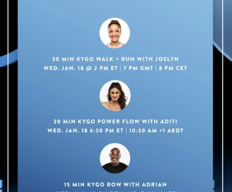 Peloton will hold a Kygo artist series on January 18, 2023. The Peloton Kygo classes will include a ride, run, walk + run, row, yoga, and more.
