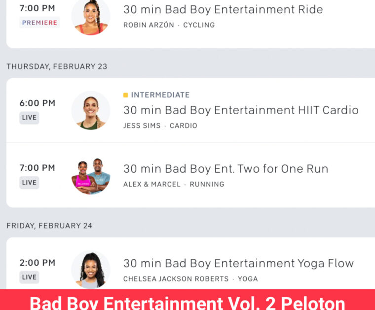 Peloton will hold their second Bad Boy Entertainment artist series beginning on February 22, 2023. Classes include a ride, run, cardio, and yoga.