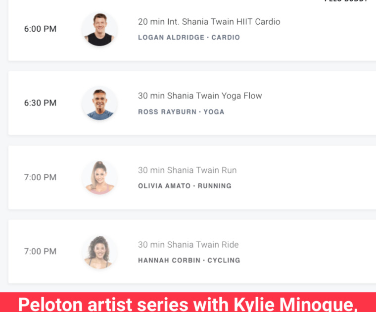 Upcoming Peloton Artist Series for Kylie Minogue, H.E.R., and Shania Twain; Artist Series Classes Shifting to Thursdays