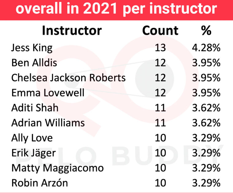 Analysis of Peloton’s Artist Series Classes: Which Peloton instructors taught the most classes in 2021?