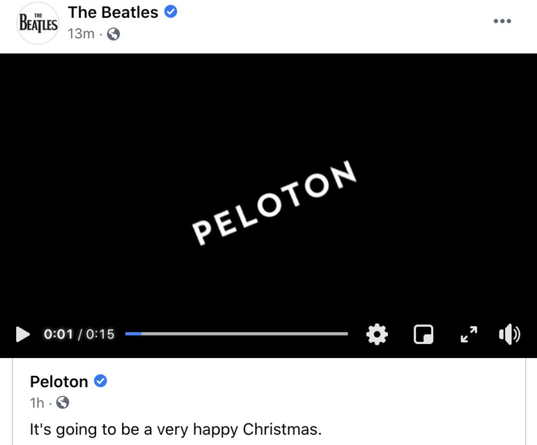 Peloton teased a special “very happy Christmas” artist series, which The Beatles Facebook page has all but confirmed to be a Beatles Peloton ride & artist series.