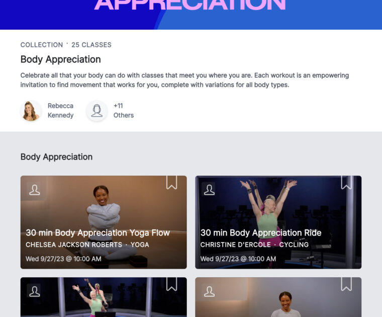 New Peloton “Body Appreciation” classes are available, and there is a “Body Appreciation” collection of classes as well.
