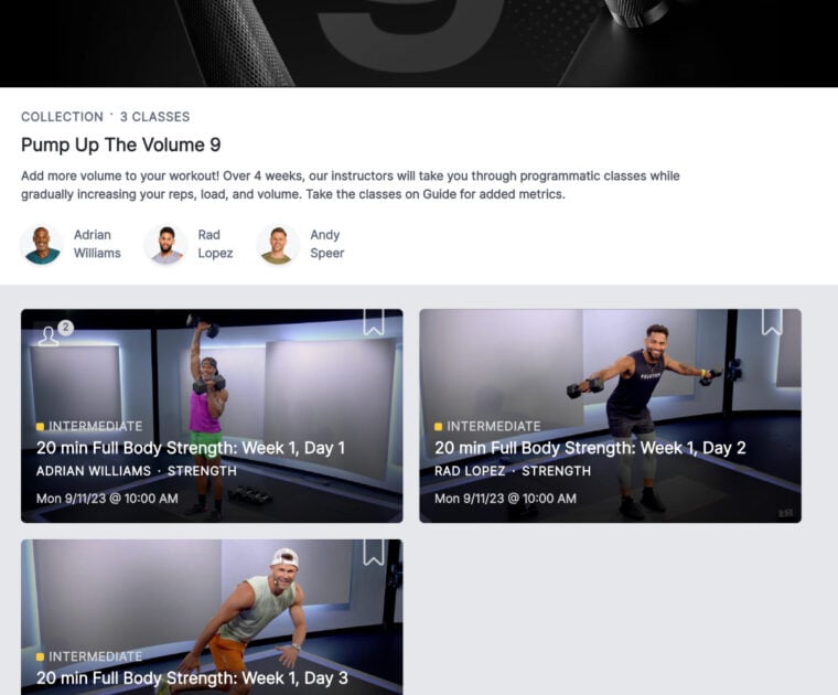 Peloton has released Pump Up The Volume 9 strength program featuring Adrian Williams, Rad Lopez, and Andy Speer.