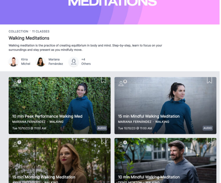 The first-ever Peloton walking meditation classes have been released along with a dedicated collection. Classes are taught by Mariana Fernández, Anna Greenberg, Denis Morton, Kirra Michel, Chelsea Jackson Roberts, and Ross Rayburn.
