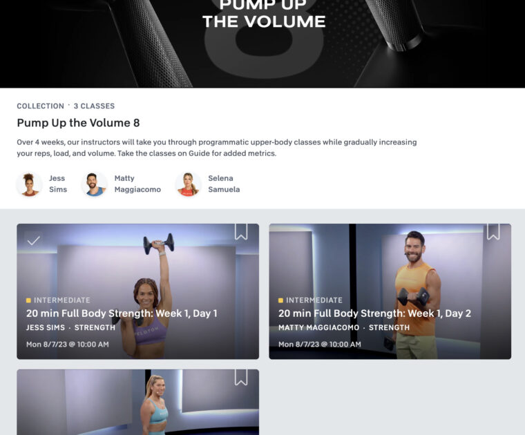 Peloton’s Pump Up The Volume 8 Strength Collection (Program) Released – Class List & Details
