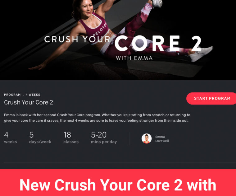 Peloton has released a new Crush Your Core 2 with Emma Lovewell program. Find a full list of classes for each week, overview of the program, and more.