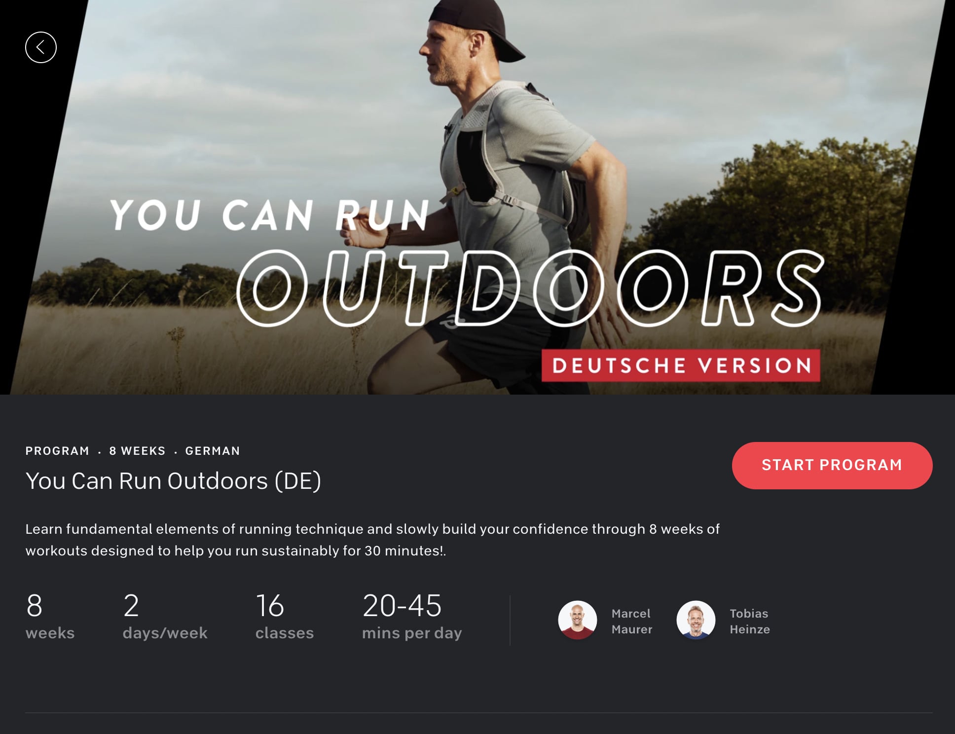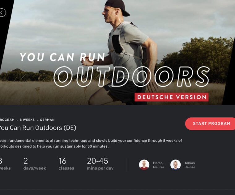 Peloton has launched a new “You Can Run Outdoors” German training program. This 8 weeks program has 16 classes taught by Marcel Maurer & Tobias Heinze.