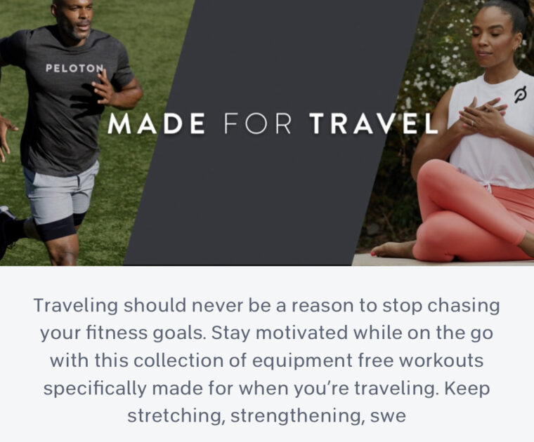 Peloton has released a new Made for Travel collection for members to take with them on the road. The collection includes 45 classes with 25 instructors.