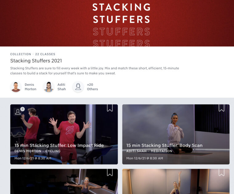Peloton has announced a new collection of 15-minute classes called “Stacking Stuffers” as part of their 2021 holiday programming.