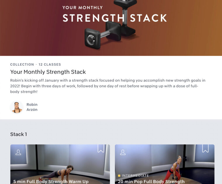 Peloton has released a new “Your Monthly Strength Stack” collection curated by instructor Robin Arzón for January 2022.