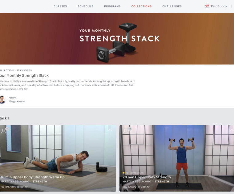 The “Your Monthly Strength Stack” collection is updated for July, and now features a series of Peloton strength & cardio classes by Matty Maggiacomo.