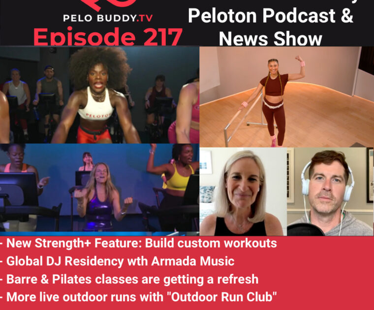 Episode 217 of Pelo Buddy TV, a Peloton podcast & Peloton news show. Top stories are a refresh of Barre & Pilates classes, more live Outdoor runs, Armada Music partnership, new Strength+ features & more.