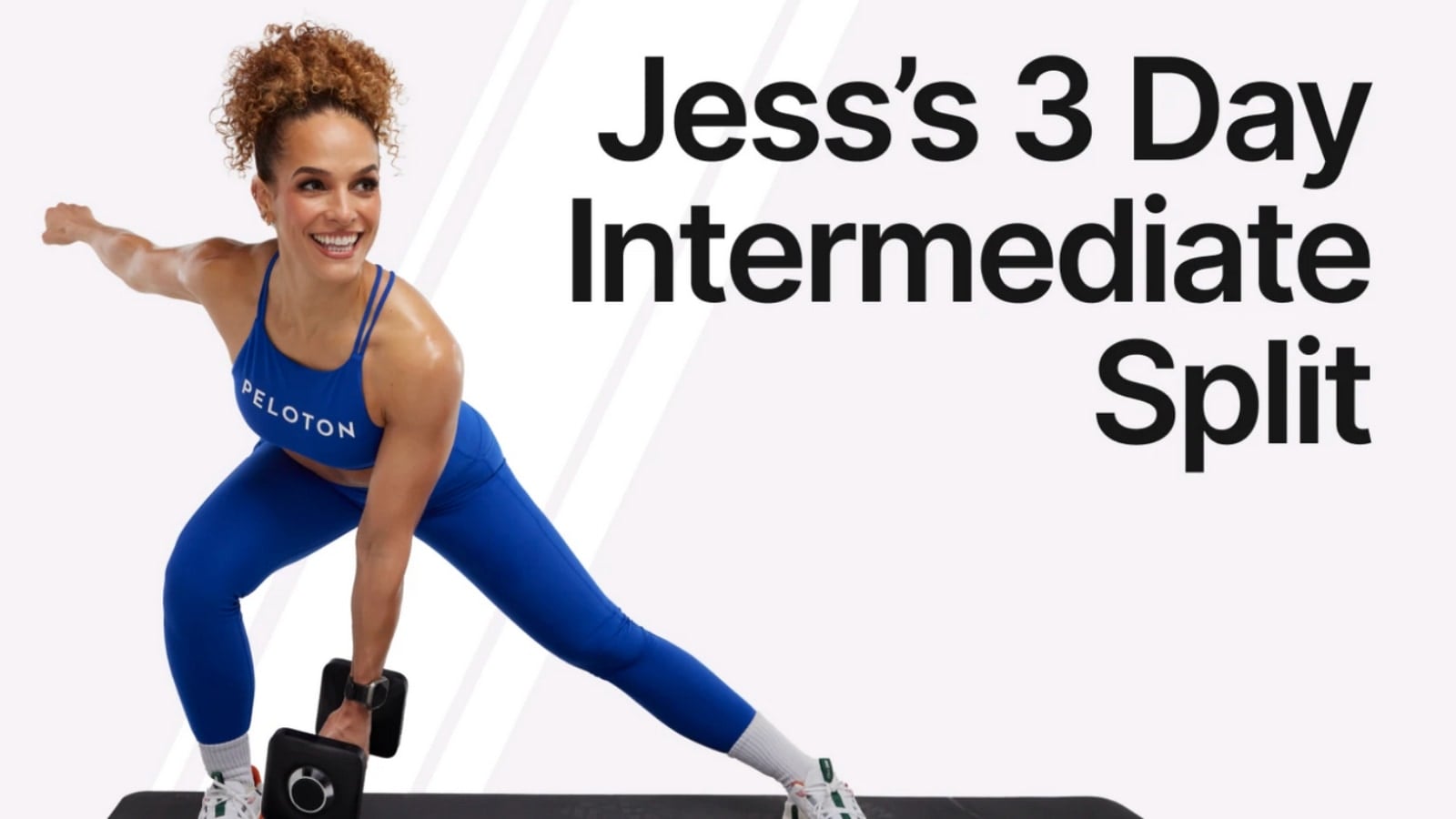 Details and class list about Jess Sims’ 3 day split strength training program on Peloton (intermediate level).