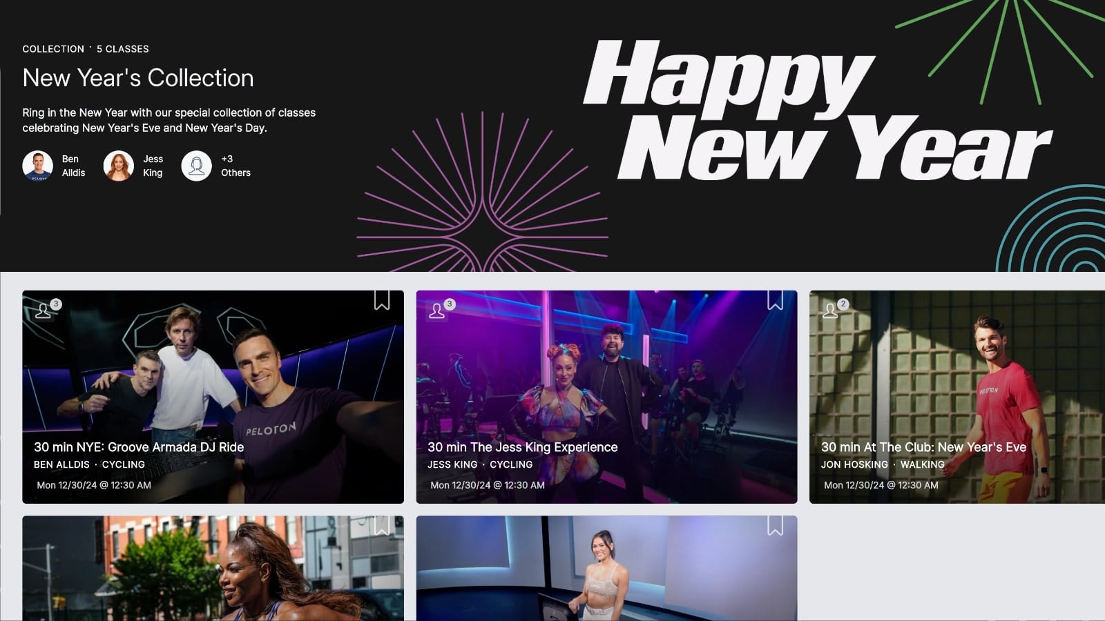 There is a new “Happy New Year” Peloton collection, containing Peloton’s New Year’s Eve and New Year’s Day classes.