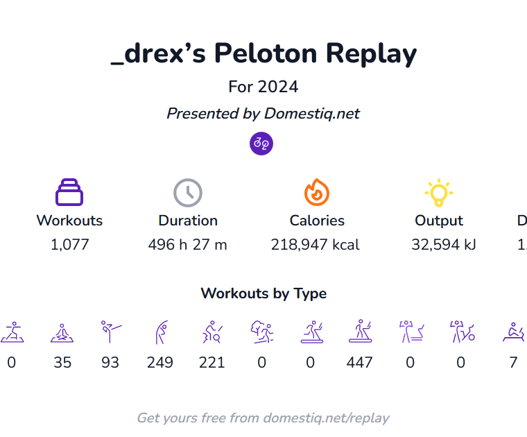 Get a full recap of your 2024 Peloton stats (a full Peloton Year In Review) using the Domestiq Replay feature.