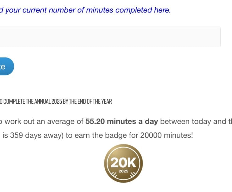 Peloton Annual challenge calculator. Easily figure out how many minutes a day you need to workout on average to complete the challenge by the end of the year and earn a badge (currently for The Annual 2026).