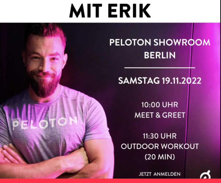 Peloton will host a meet and greet event with instructor Erik Jäger at a Berlin, Germany showroom on November 19, 2022.