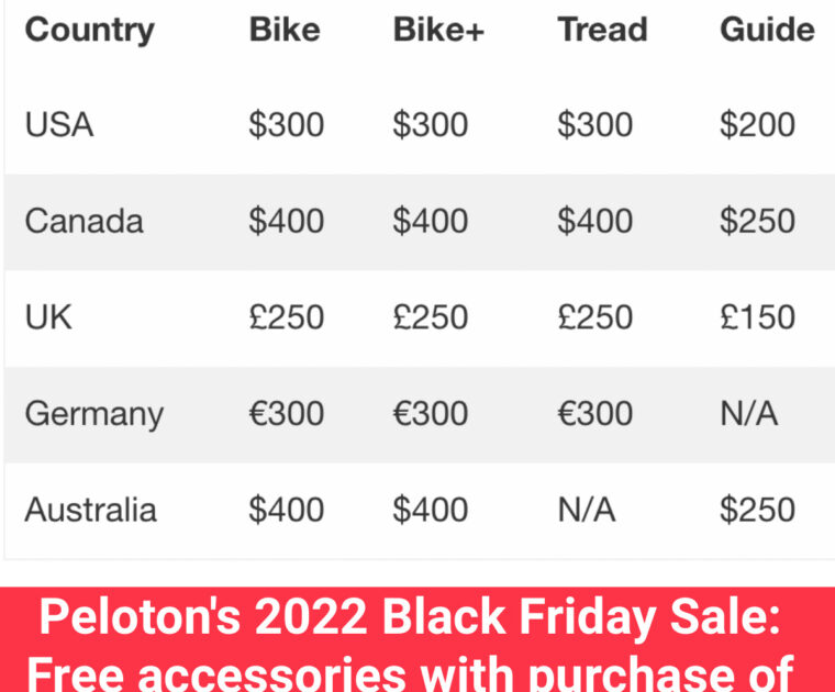 Peloton’s Black Friday sales are here for the Peloton Bike, Peloton Tread, Peloton Bike+, Peloton Row, and Peloton Guide. The sales are from November 14 – 28, and offer free accessories with the purchase of hardware.