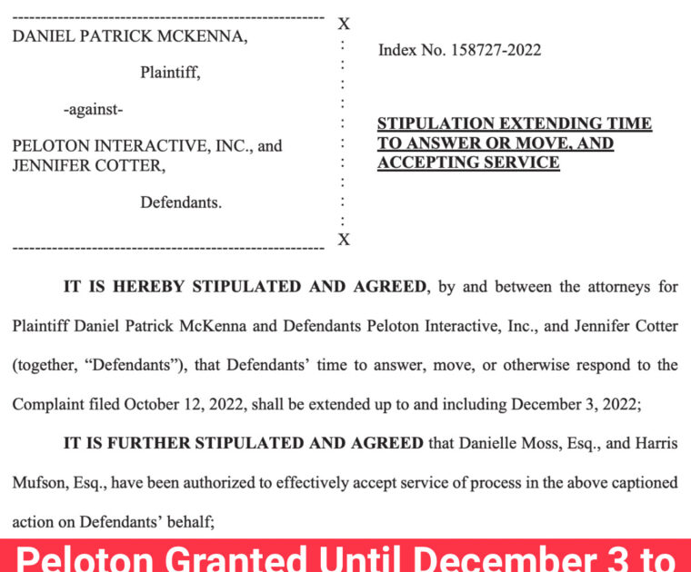 Peloton Granted Until December 3 to Reply to Daniel McKenna’s Lawsuit