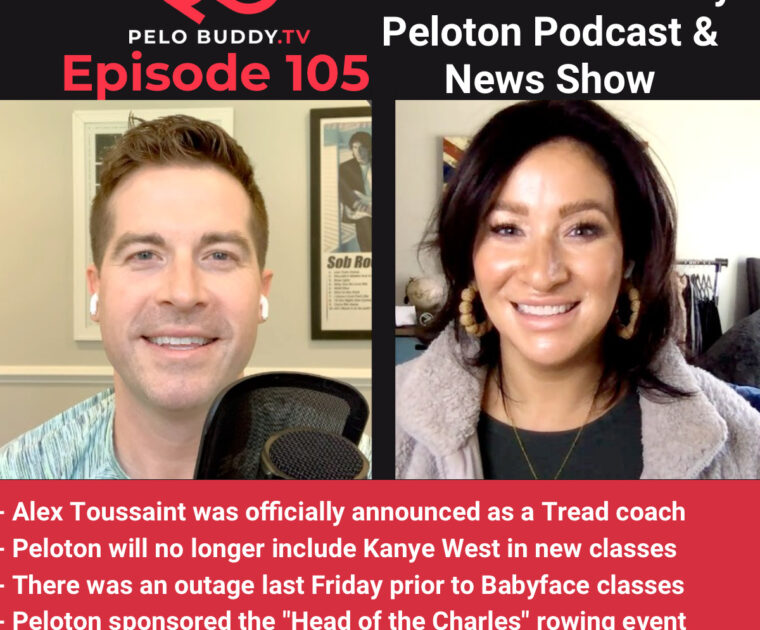 Episode 105 of Pelo Buddy TV, a Peloton podcast & Peloton news show. Top stories are Alex Toussaint will teach running classes on Tread, Peloton will not use Kanye West songs moving forward, there was another outage last week & more.