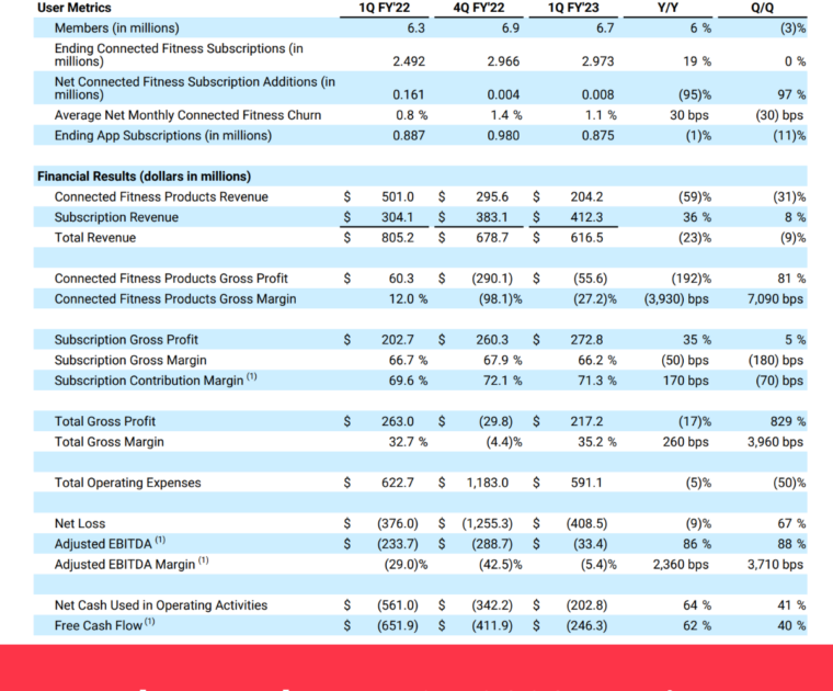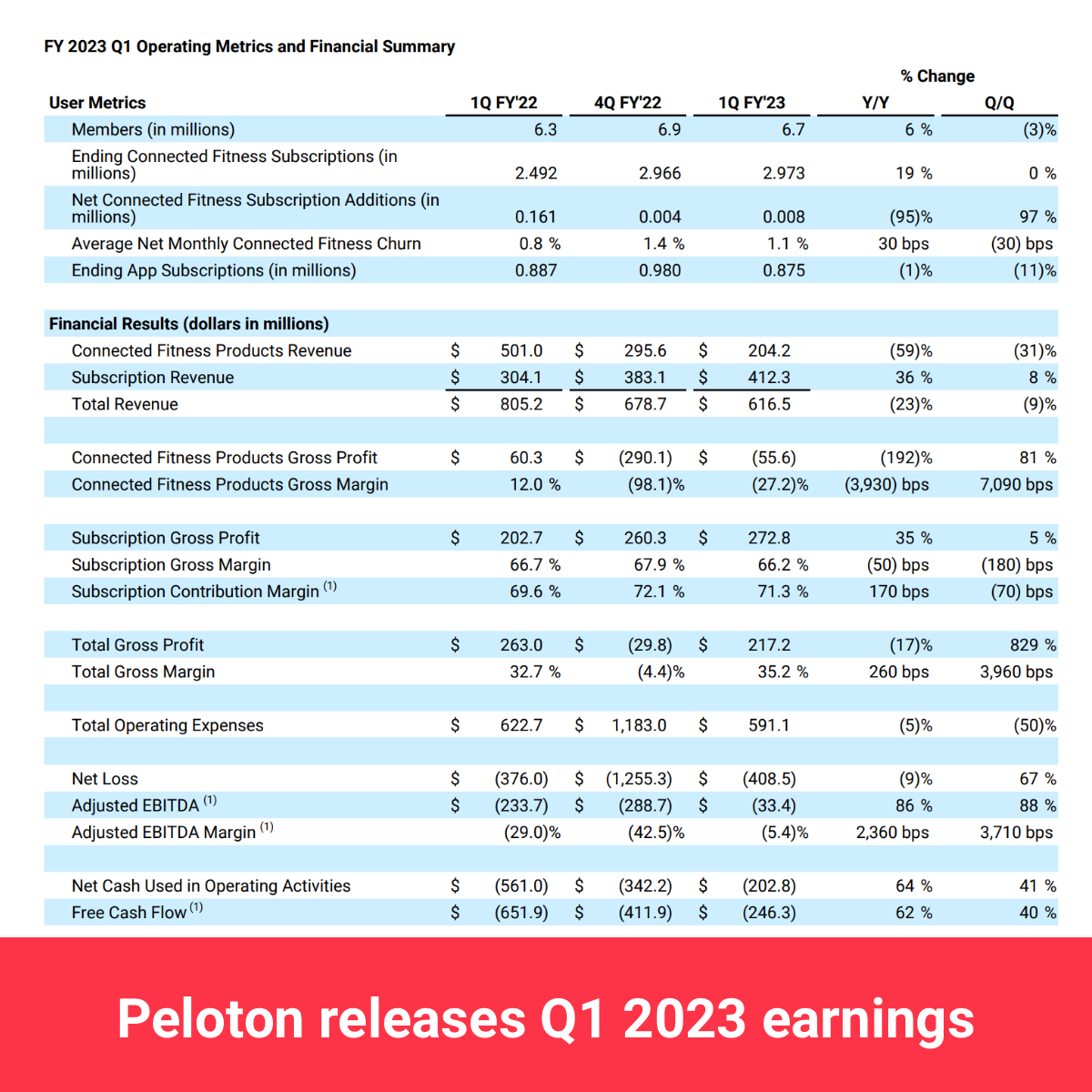Peloton released their Q1 2023 FY earnings data this morning, and the stock price is lower in pre-market trading.