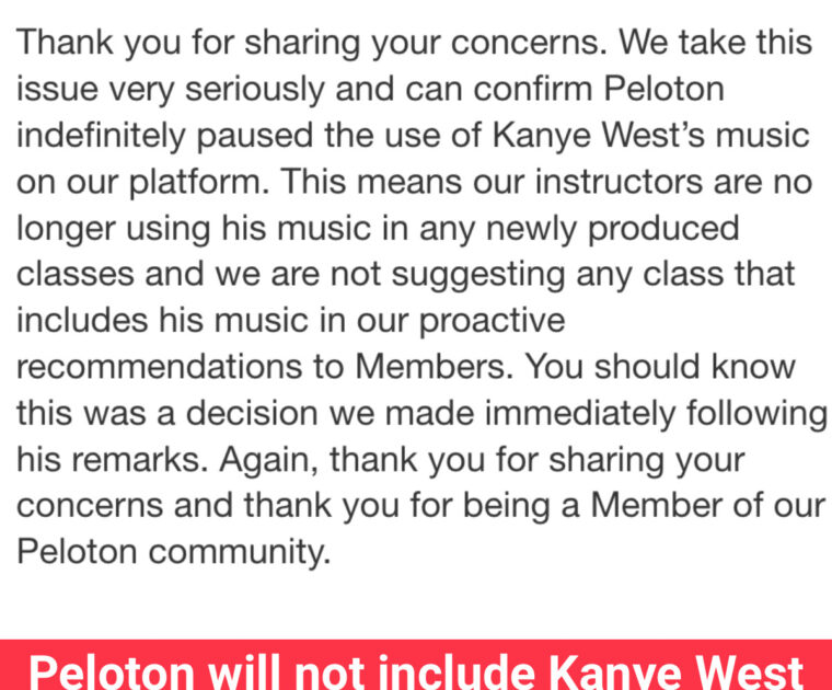 Peloton has provided a statement regarding the use of Kanye West’s music on their platform – indicating no new classes will feature his music.