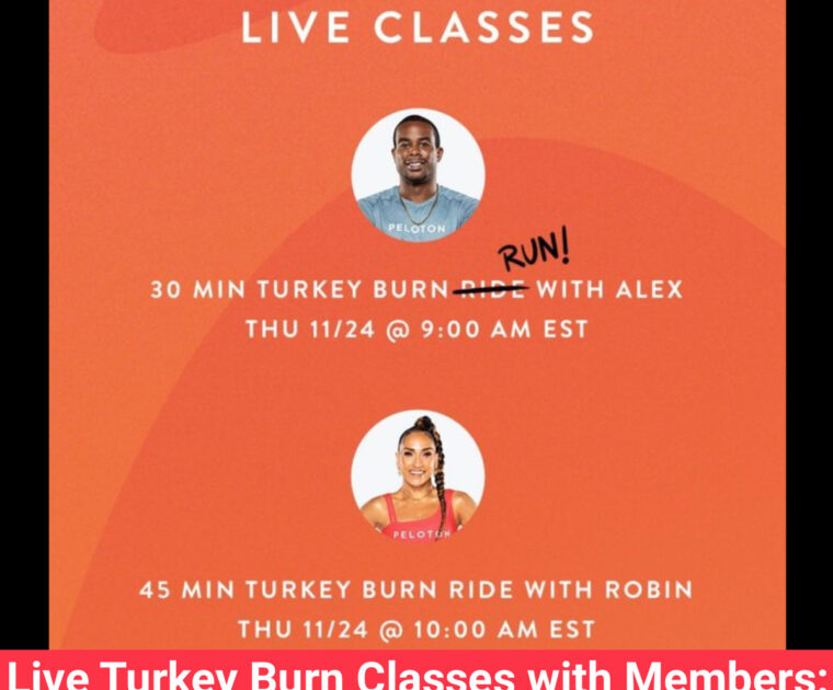 Peloton will have a live Turkey Burn Run with Alex Toussaint & Turkey Burn Ride with Robin Arzon on Thanksgiving Day with members in studio.