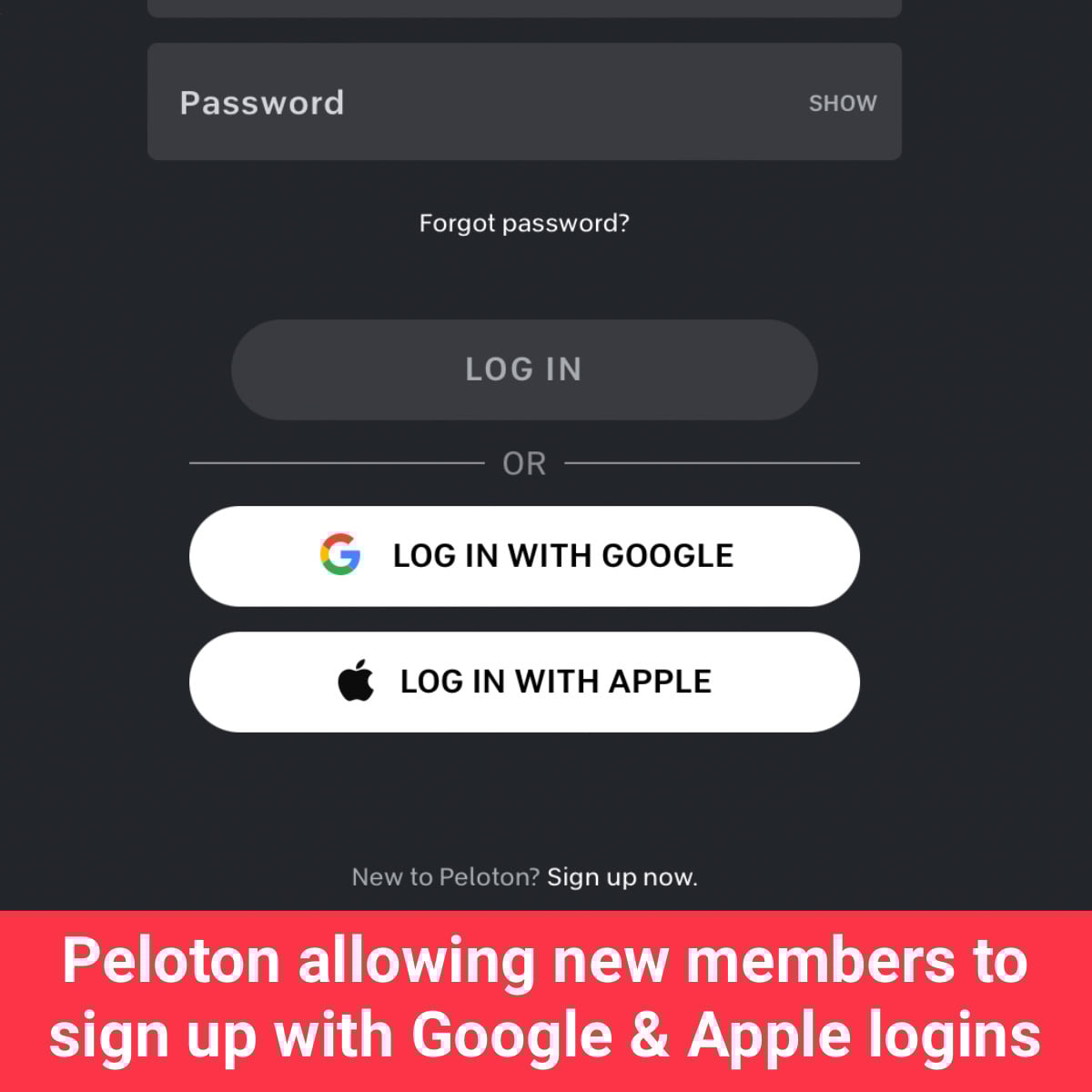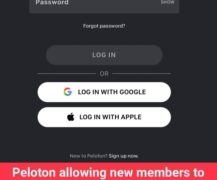 Peloton has added a way to create new accounts using either Apple or Google logins.
