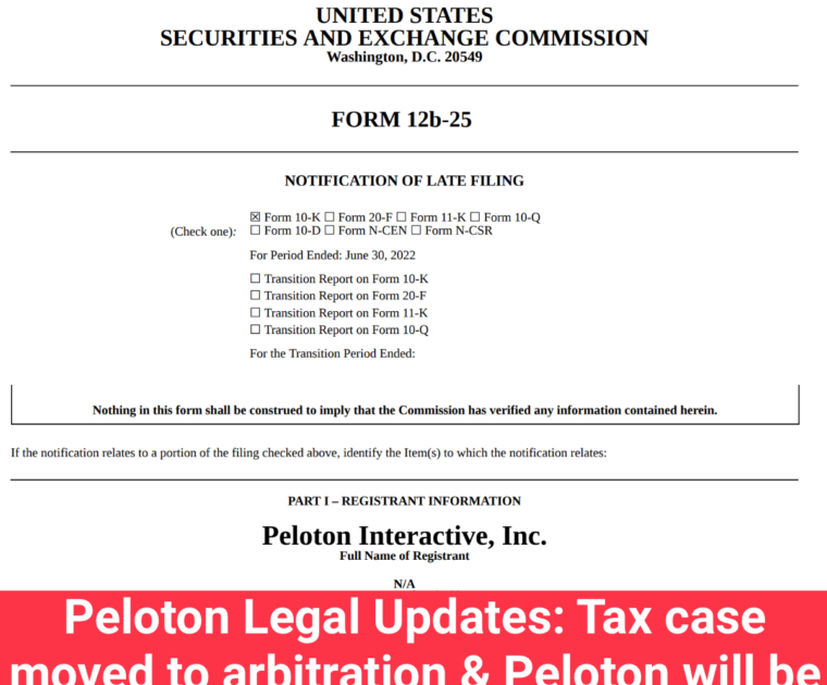 Peloton Legal Updates: Tax case moved to arbitration & Peloton will be delayed in filing annual 10-K form