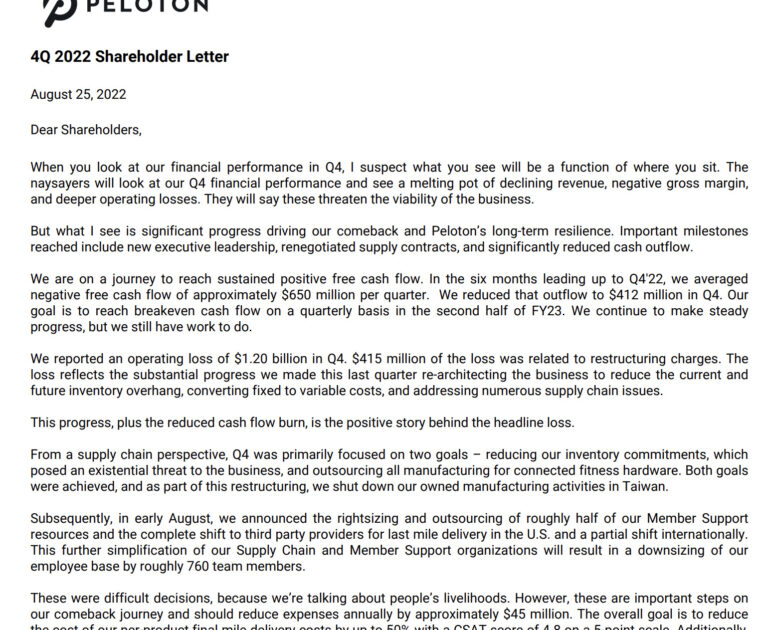 Peloton reporting big losses in Q4 Earnings Call, but CEO Barry McCarthy remains hopeful that this is the point where things will begin to turn around.