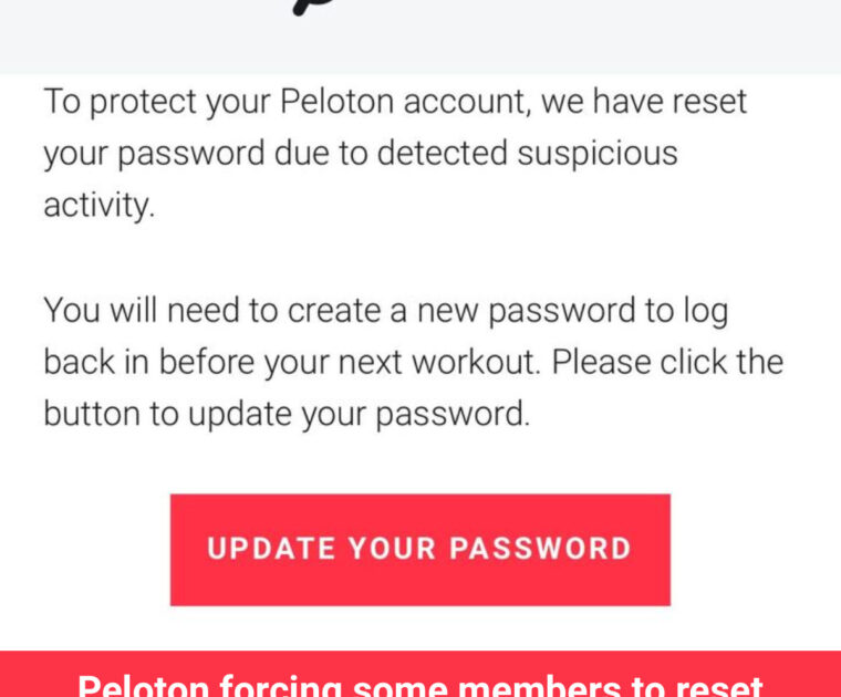 Peloton is forcing some members to reset their passwords to “protect” their Peloton accounts “due to detected suspicious activity”