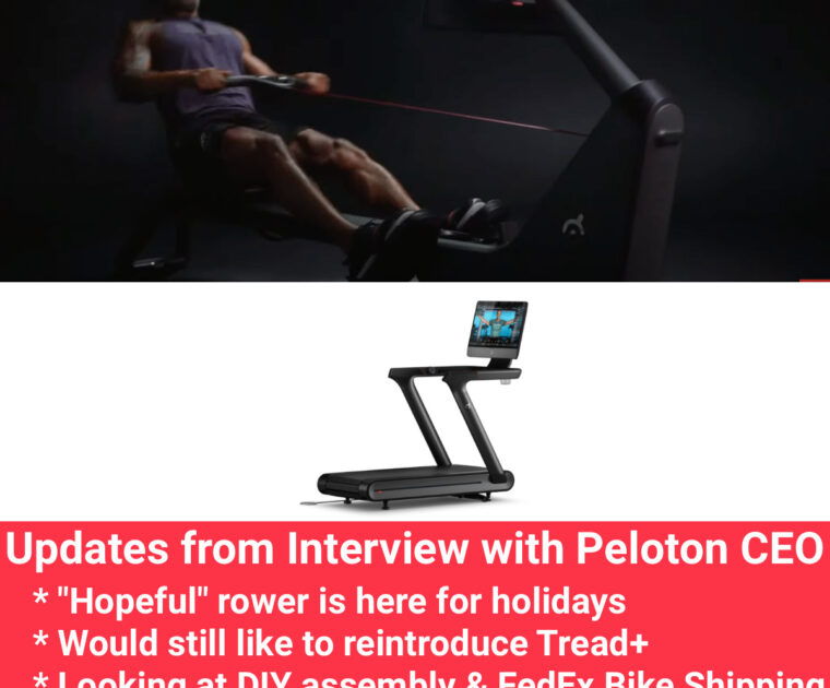 Peloton CEO: Hopeful about Rower by holidays, Still wants to re-release Tread+, looking at self-Assembly for Bikes