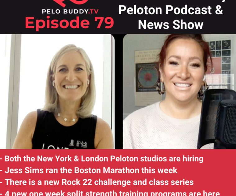 Episode 79 of Pelo Buddy TV, a Peloton podcast & Peloton news show. Top stories are both Peloton studios are hiring, Jess Sims ran the Boston Marathon, new split strength training programs are available, and more.