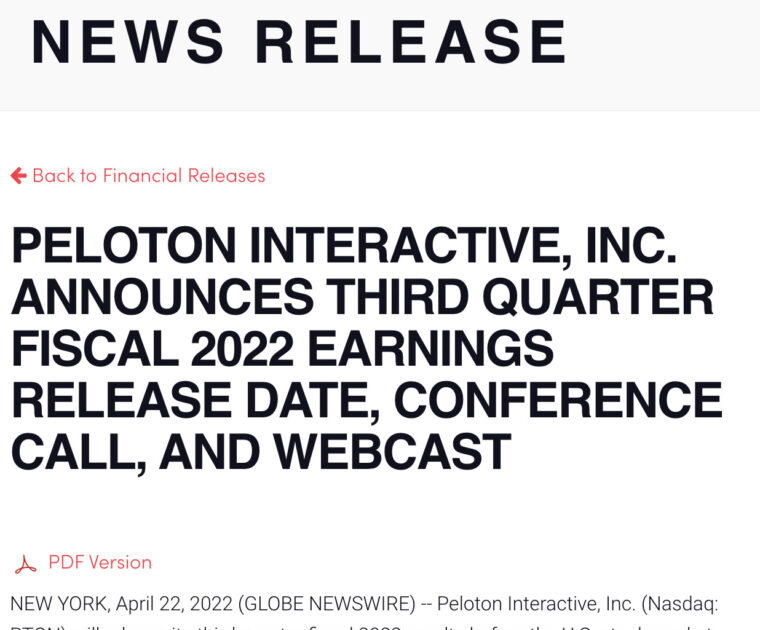Peloton Q3 2022 Earnings Call Date Announced