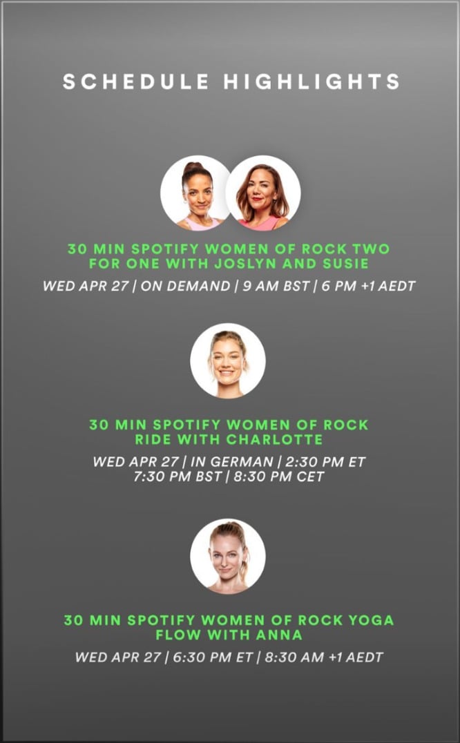 Peloton has announced a Women of Rock artist series in collaboration with Spotify. Classes begin on April 27 and will count towards the Rock 22 Challenge.