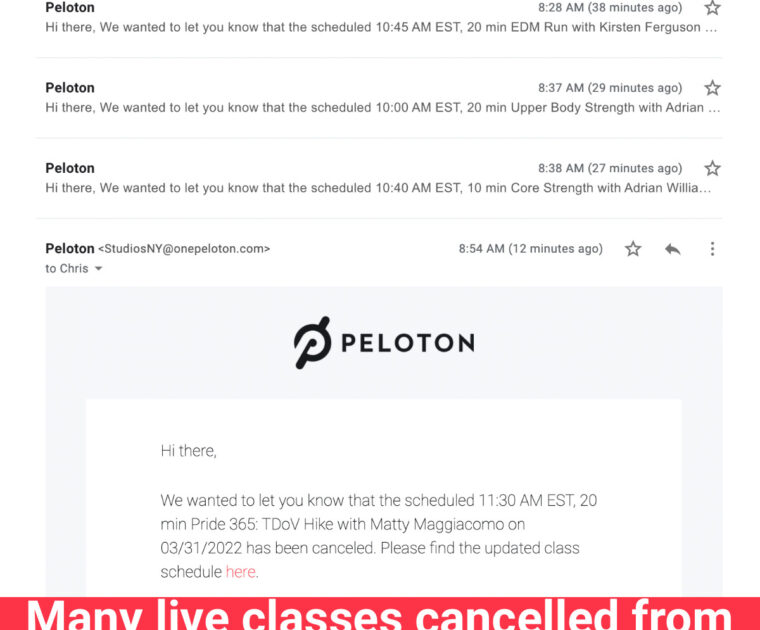 Peloton has cancelled most of their live classes for the morning & afternoon from their New York Studios.