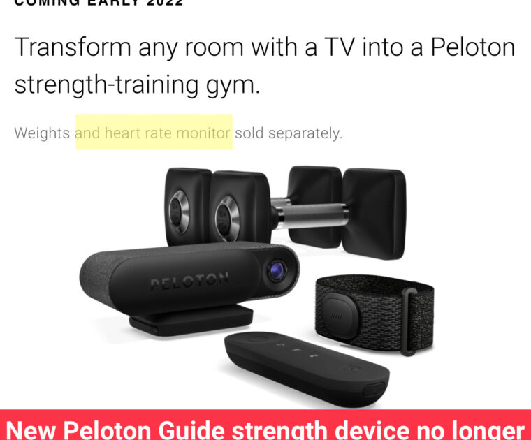 Peloton has updated a landing page for the new Peloton Guide device, and it now implies that the Heart Rate Band will no longer be included with purchase.