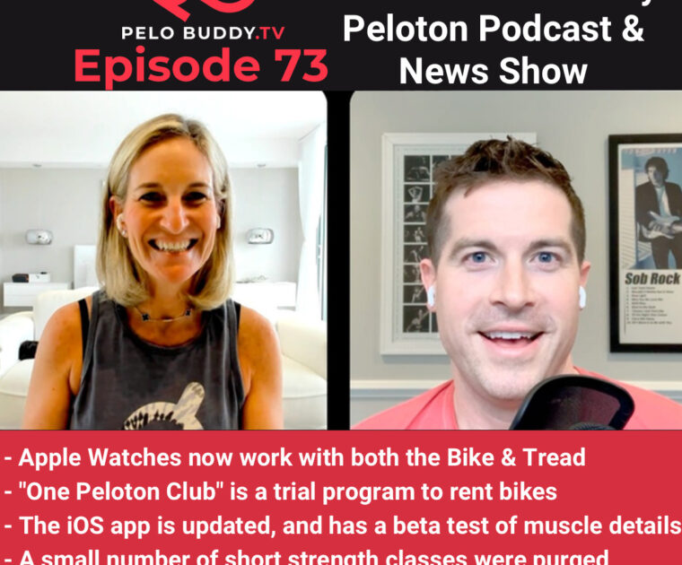 Episode 73 of Pelo Buddy TV, a Peloton podcast & Peloton news show. Top stories are Apple watch support for the Peloton Bike & Tread, the “One Peloton Club” rental program, app updates & more.