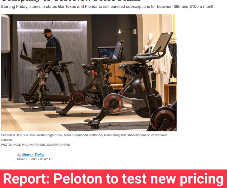 The Wall Street Journal is reporting that Peloton will begin testing new pricing plans that bundle the initial purchase of a Bike with the monthly subscription fee.