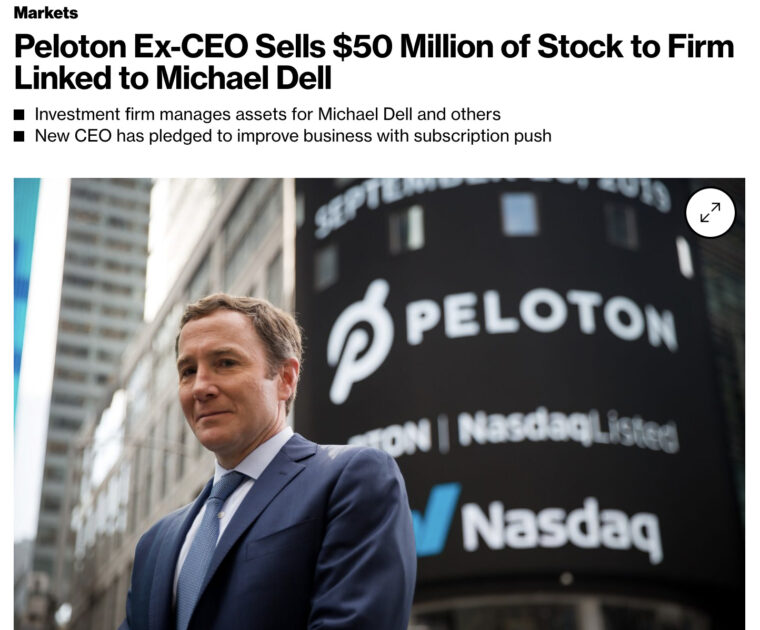 Multiple media outlets have reported that Peloton founder and former CEO John Foley sold $50 million in stock to MSD Partners, a firm that is linked to billionaire Michael Dell.