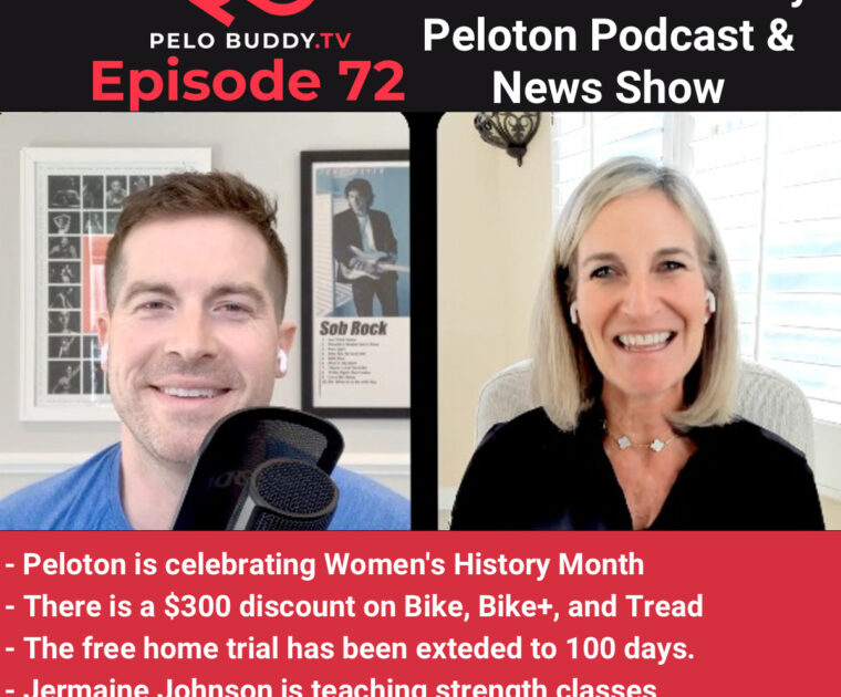 Episode 72 of Pelo Buddy TV, a Peloton podcast & Peloton news show. Top stories are Women’s History Month, $300 discount on all products, new comments about changes to Peloton pricing, and more.