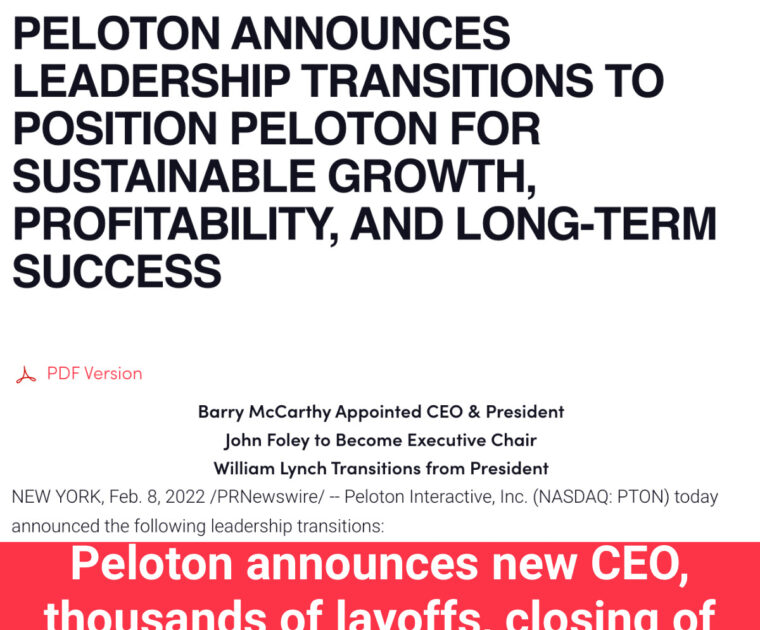 Peloton CEO John Foley Stepping Down; 2,800 employees being laid off; Peloton Output Park being closed.
