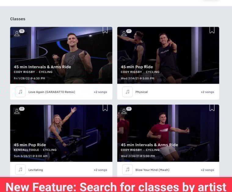 The search feature, which was previously only available on Bike and Tread devices, is now available on the Peloton web browser to search by artist or class title & name.