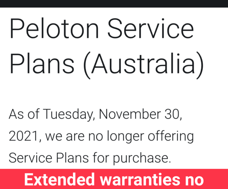 As of Tuesday, November 30, Peloton is no longer offering extended warranties on Bike and Bike+ devices in Australia.