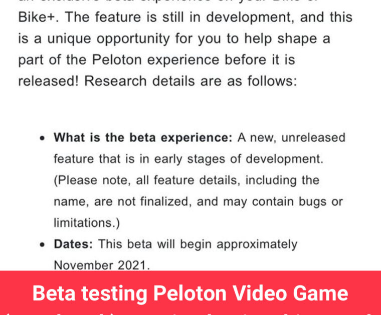 Beta testing for the Peloton Video Game (tentatively called Peloton Lanebreak) is set to begin later this month – Peloton is sending surveys to members to find beta testers.