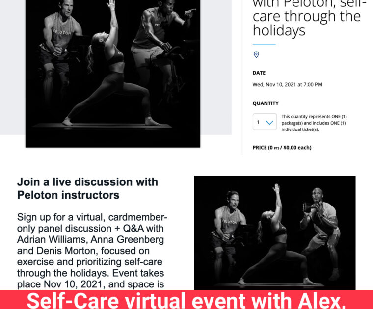 Chase is hosting a free virtual “Self-Care Through the Holidays” event with Peloton instructors Alex Toussaint, Anna Greenberg, and Denis Morton on Nov 10.