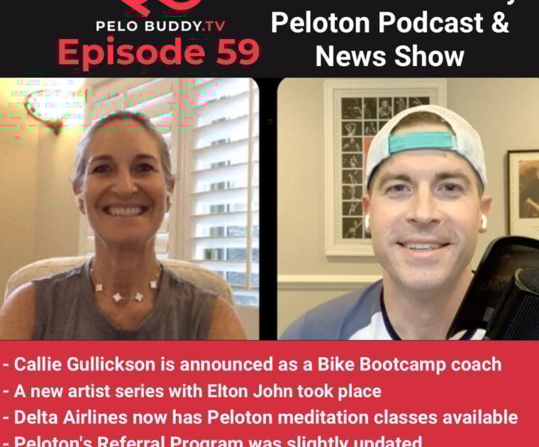 Welcome to Episode 59 of Pelo Buddy TV, a Peloton podcast & Peloton news show. Top stories are Callie Gullickson teaching Bike Bootcamp, Elton John Peloton classes, classes on Delta flights, referral program updates and more.