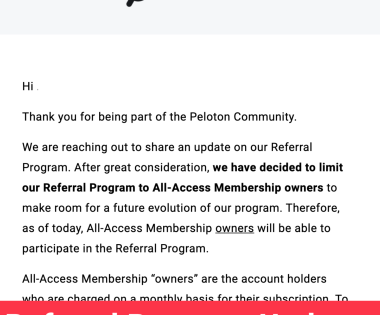 Peloton has made changes to their referral program by limiting the benefit to primary account holders only.