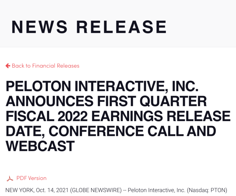Peloton Q1 2022 Earnings Call Date Announced